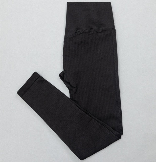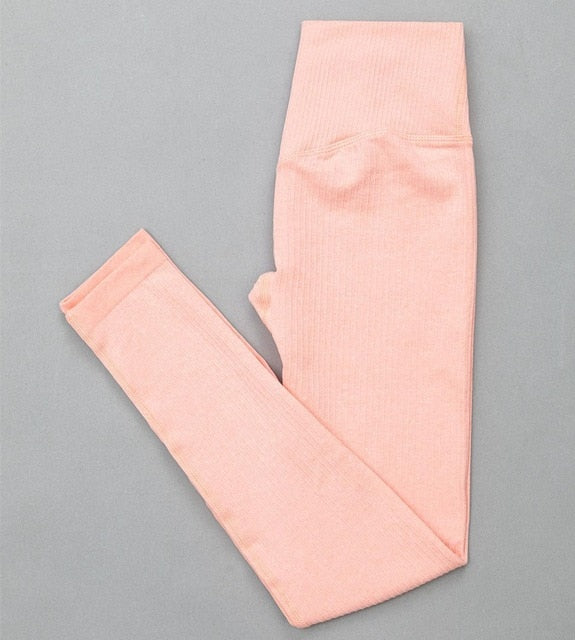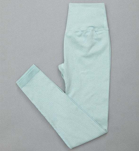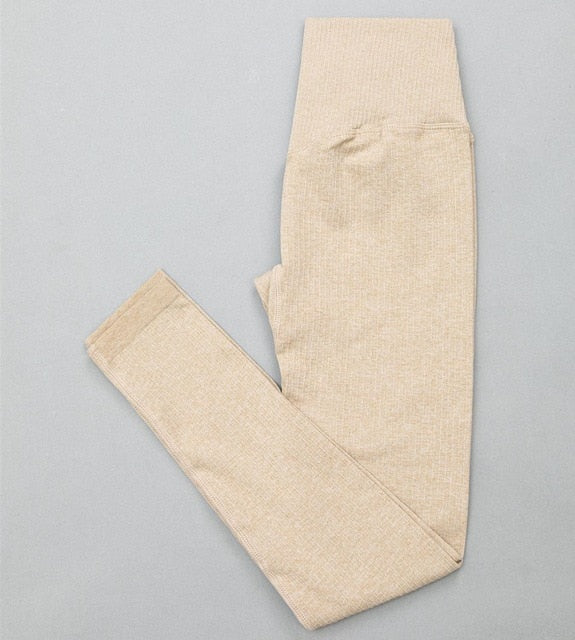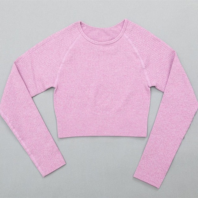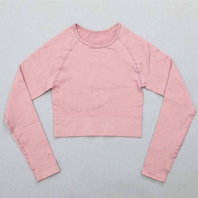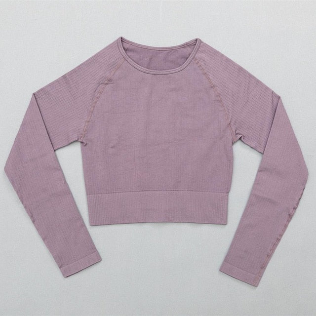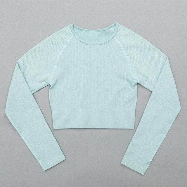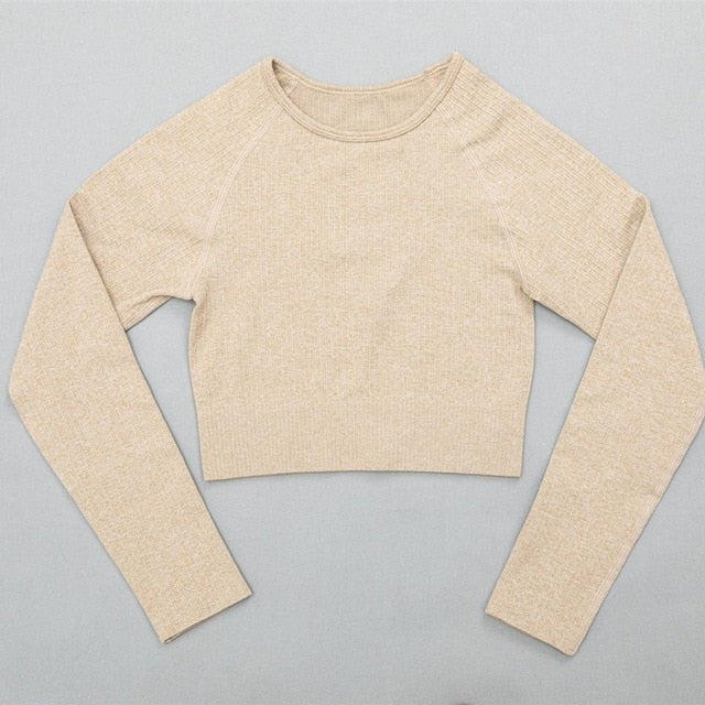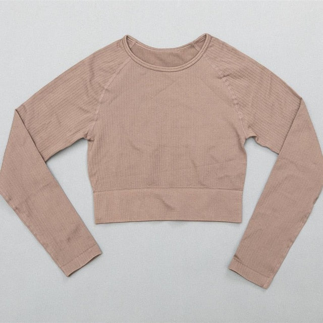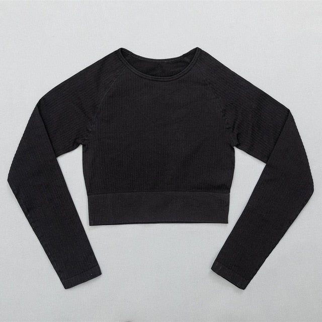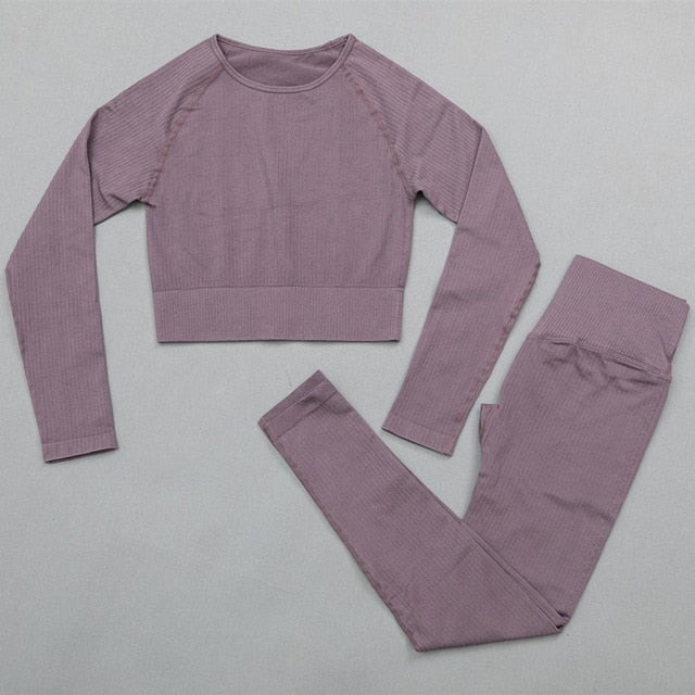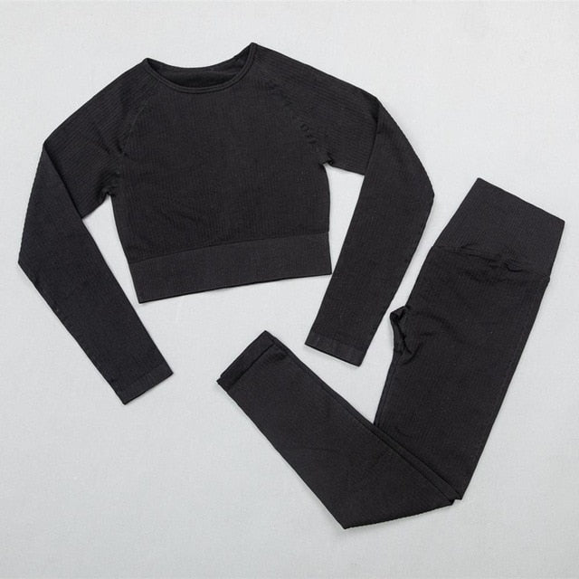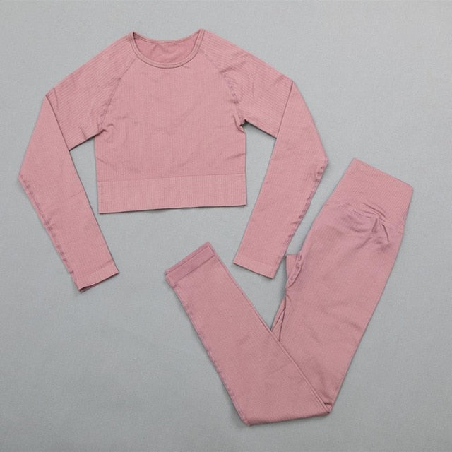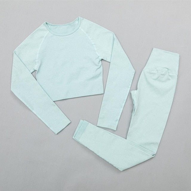 Seamless Yoga Suit Sports Set Gym Clothes Fitness Women Long Sleeve Crop Top High Waist Leggings Ribbed Workout Set Tracksuits