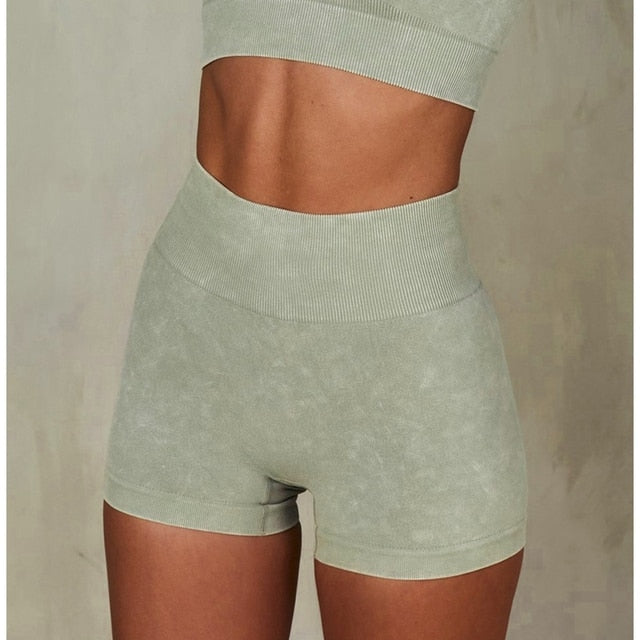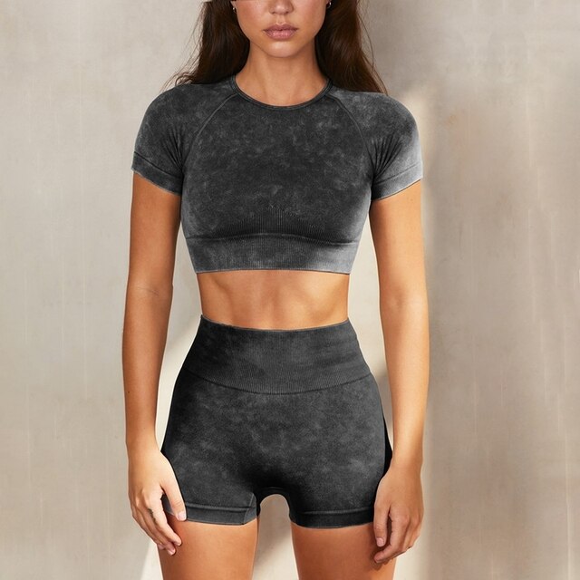 Sports Two Piece Yoga Set Outfit Women Workout Clothes Washed Fitness Seamless Suit High Waist Leggings Crop Top Rainbowshades