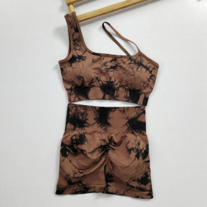 Tie Dye Two Piece Set Yoga Set Summer High Waist Stretch Gym Shorts Seamless Padded Yoga Bra Workout Suits Sports Wear Femme